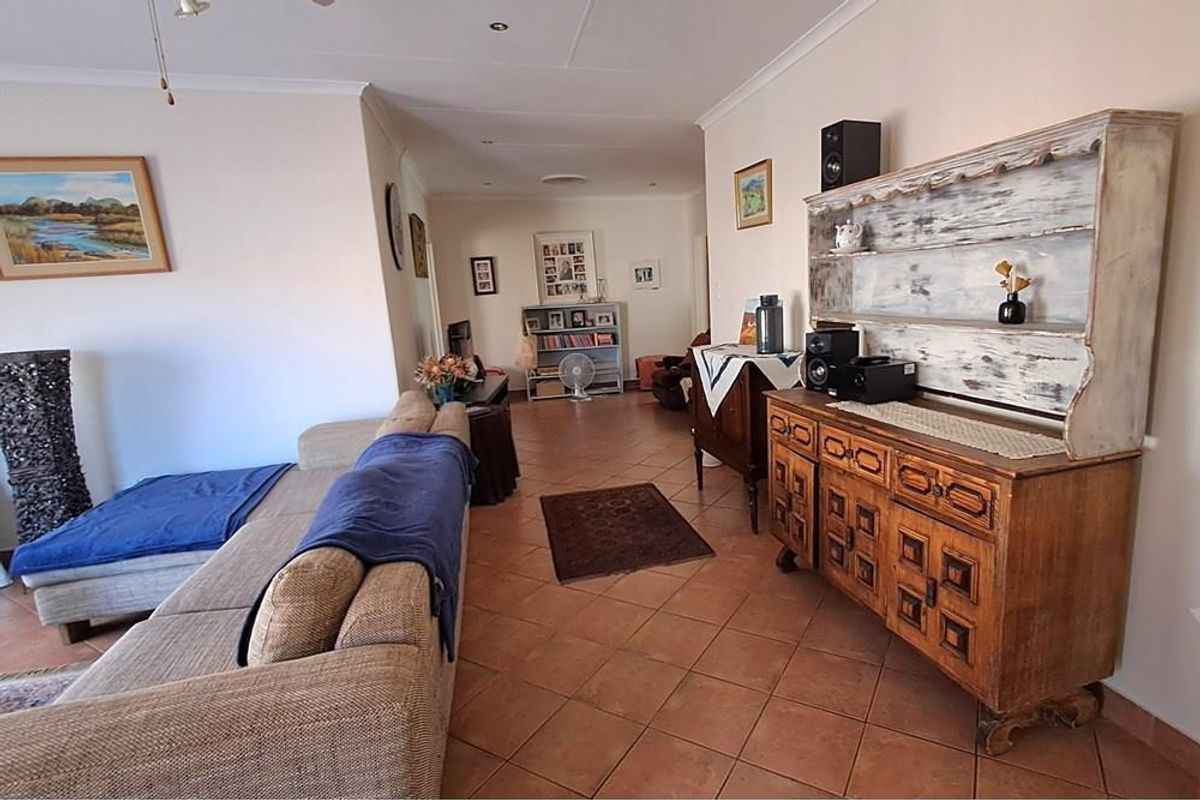 This spacious townhouse offers 2 bedrooms with built-in cupboards, ceiling fans, and tiled floors. It has 2 bathrooms: one with a toilet, bath, shower, and basin, and the other with a toilet, shower, and basin. The large kitchen features built-in cupboards. There is an open-plan dining room, lounge, and TV room/study.