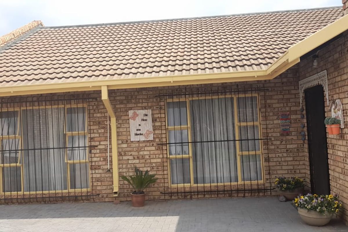 Family-friendly townhouse in Parys within a pet-friendly gated community, ideal for young families. Open-plan living with breakfast nook and patio overlooking a quaint garden; three bedrooms, one bathroom.