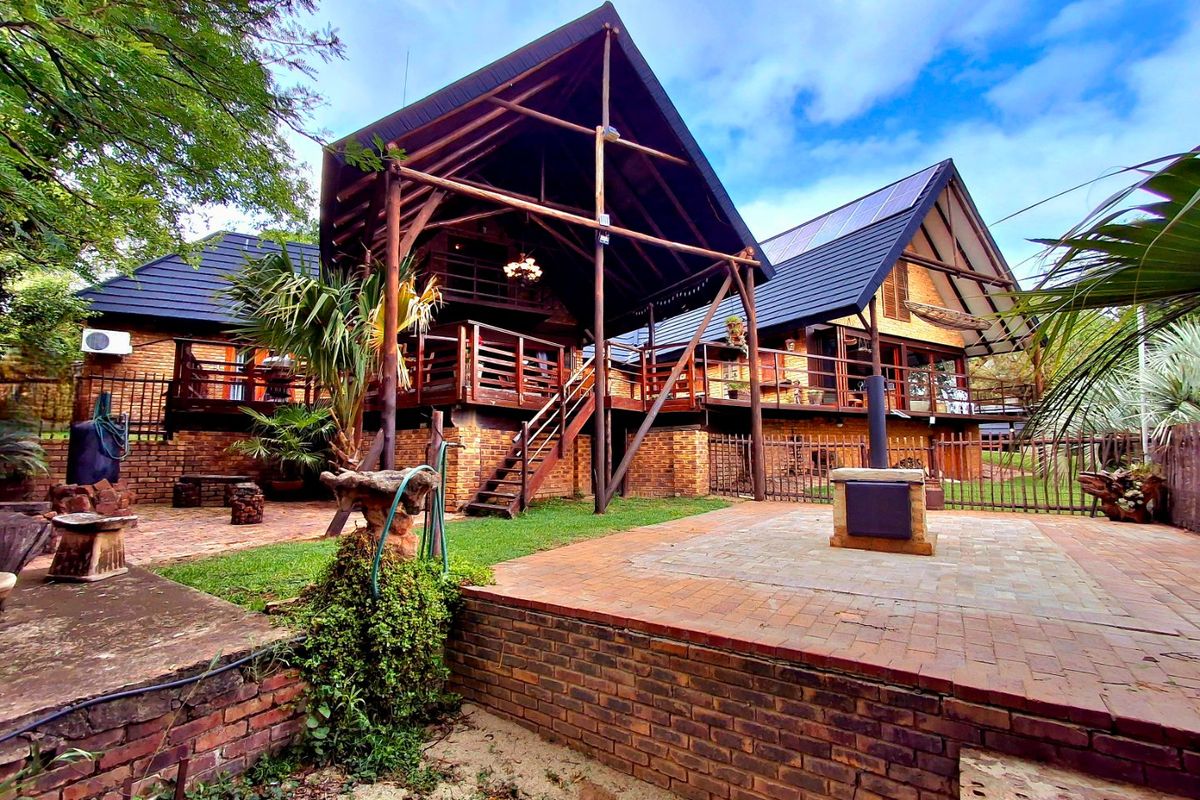Riverfront weekend retreat on the Vaal, 25 minutes from Sasolburg and Vanderbijlpark, ideal for boating and entertaining with private double boat lockers, jetty, and five bedrooms.