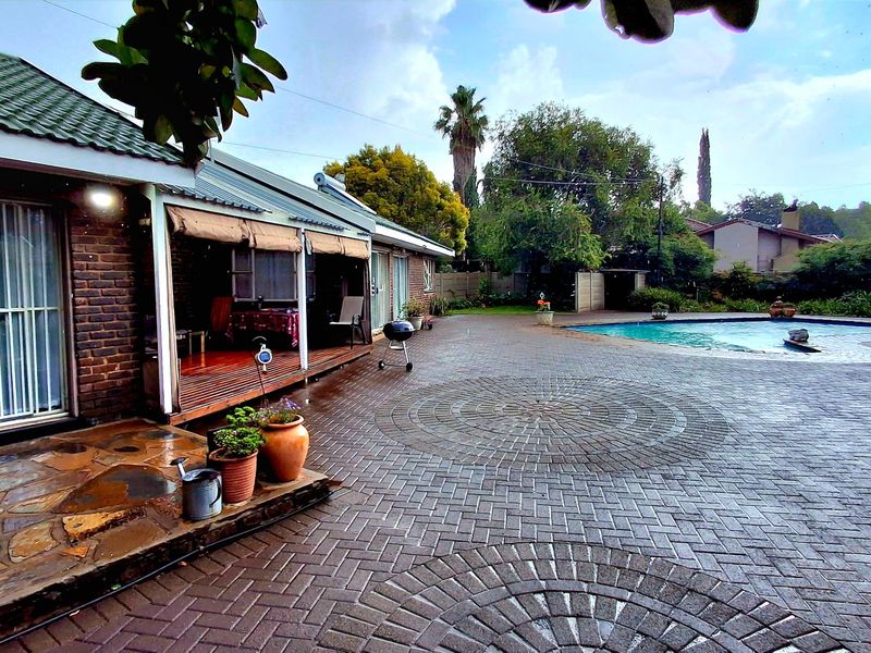 Entertainer's family home with seamless indoor-outdoor living and pool, lush borehole-fed garden, walking distance to shops and schools; four bedrooms, double garage.