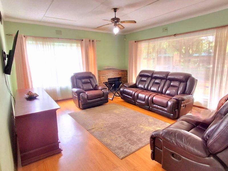 Ideal for large families or investors, walk-to-town location with expansive garden on nearly 2,000 m², entertainer’s lapa and built-in braai — five bedrooms, two bathrooms.