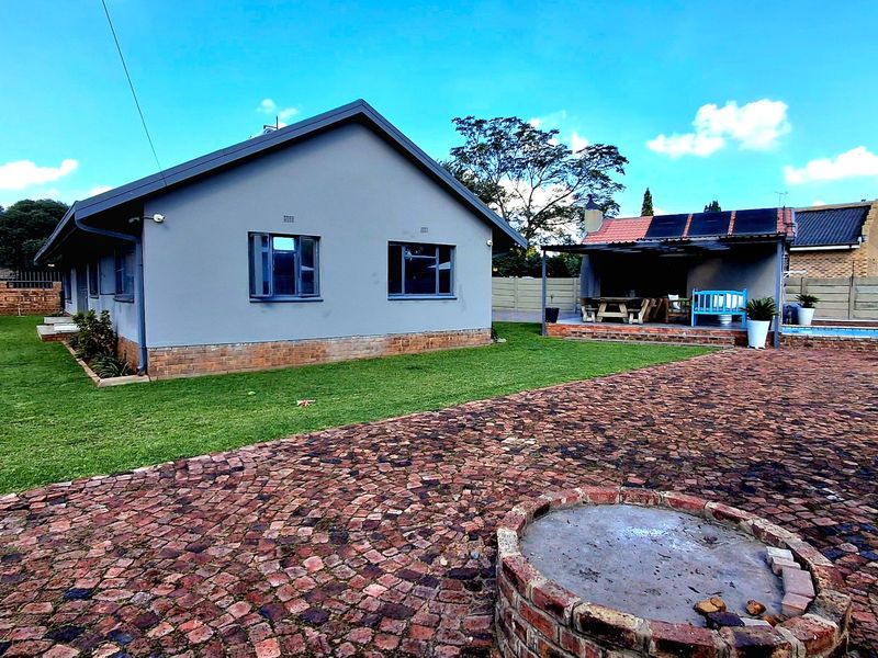 Family-friendly Vaalpark corner stand within walking distance to schools and amenities. Entertain under the lapa with built-in braai and pool; four beds, three baths, double garage.