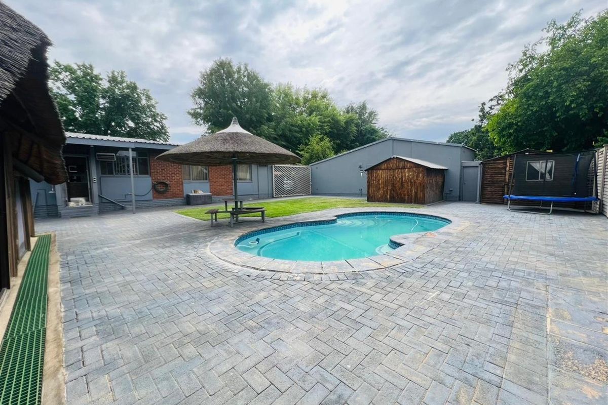 Entertainer's dream in Sasolburg Central with a totally fenced garden, lapa and pool shed — bright lounge and TV room; four bedrooms and two bathrooms.
