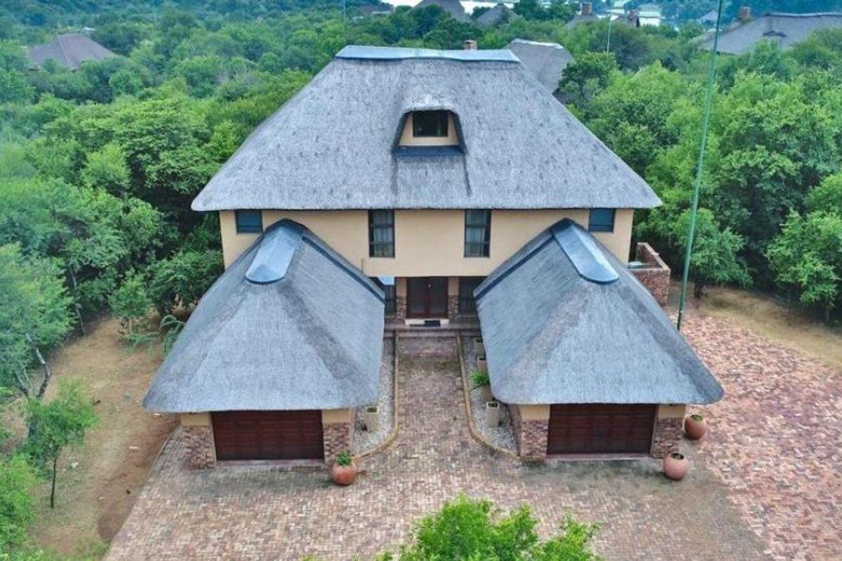 Riverside family retreat in Boschenvaal Eco Estate — walk to the Vaal River harbour, boathouse with Panache V8, thatch patio and small pool, six bedrooms, two garages.