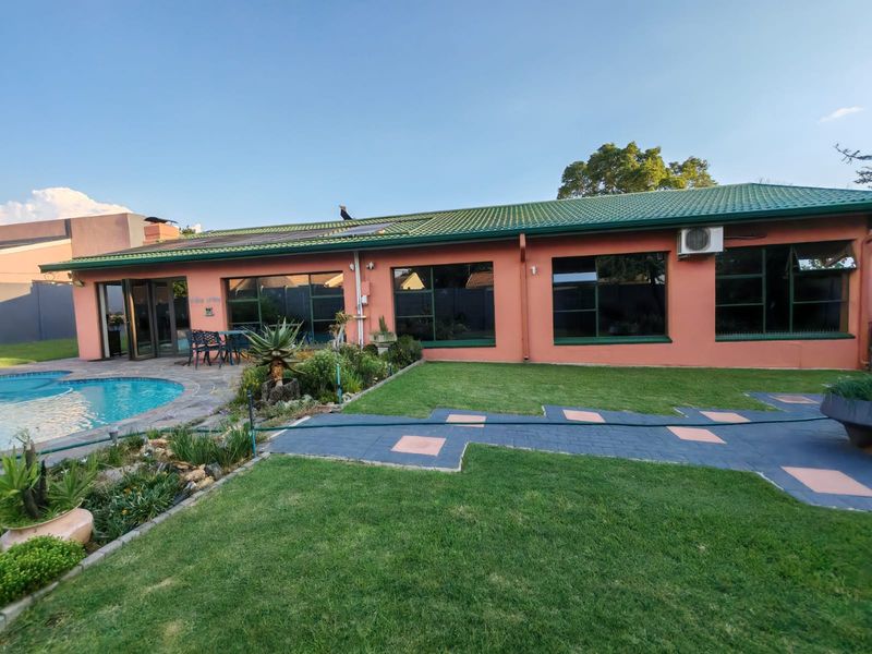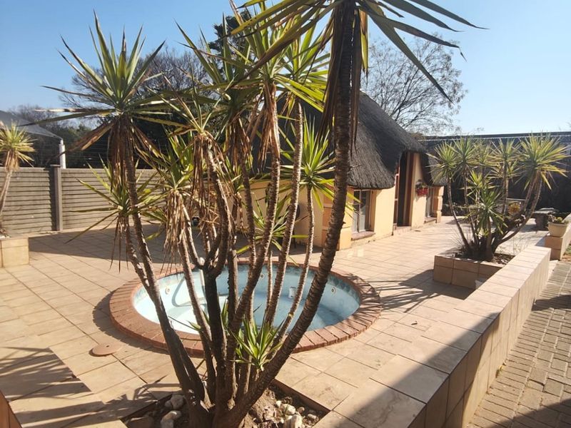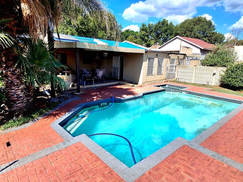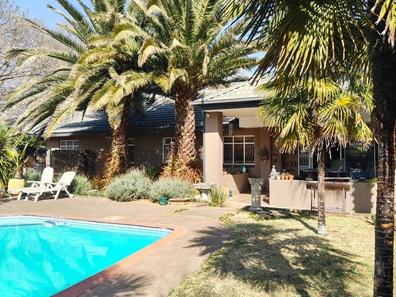 Resort-style family living in Sasolburg, moments from schools and shops, with huge lapa — Harvey-tiled roof, built-in bar, braai and jacuzzi, pool, borehole, caravan parking; 3 beds, 2.5 baths.