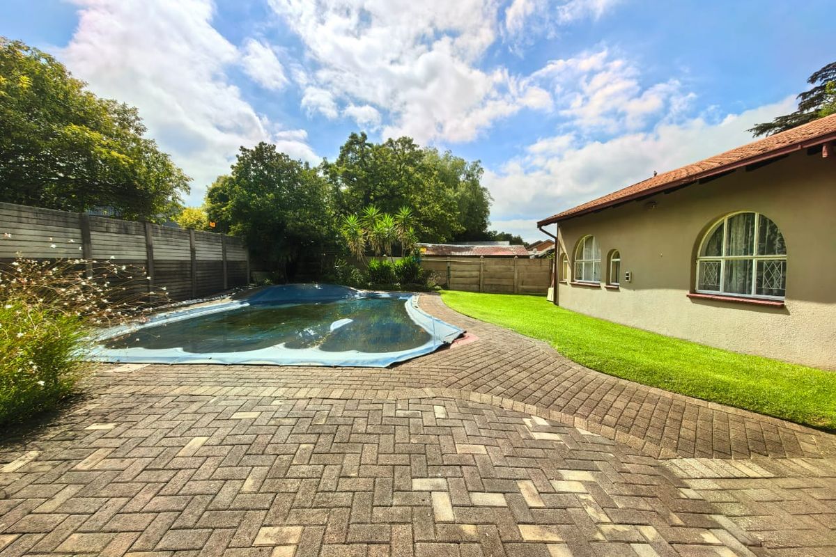 Entertain effortlessly in a leafy, family-friendly neighborhood with a built-in braai and large pool; generous 1,216 m² garden with automated borehole. Three bedrooms, two baths, double garage.