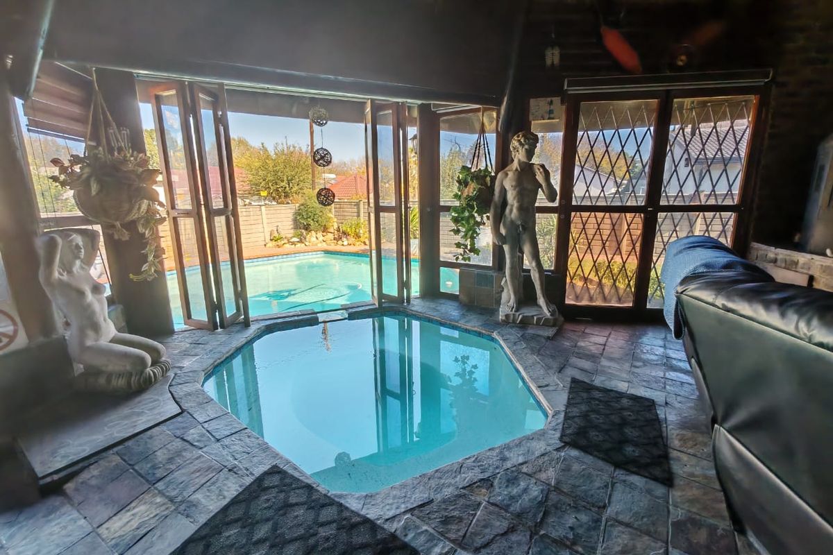 Resort-style family living in Sasolburg, moments from schools and shops, with huge lapa — Harvey-tiled roof, built-in bar, braai and jacuzzi, pool, borehole, caravan parking; 3 beds, 2.5 baths.