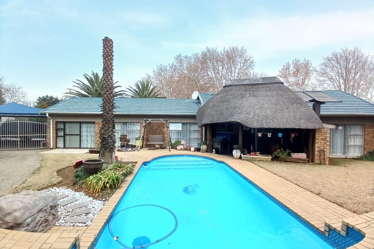 Three living areas, lounge, dining room, and tv room. Beautiful kitchen with ample cupboard space, a breakfast nook, scullery, and a laundry. The TV room is flowing out to the entertainment area consisting of a lapa with braai and a bar, as well as the heated, sparkling swimming pool.