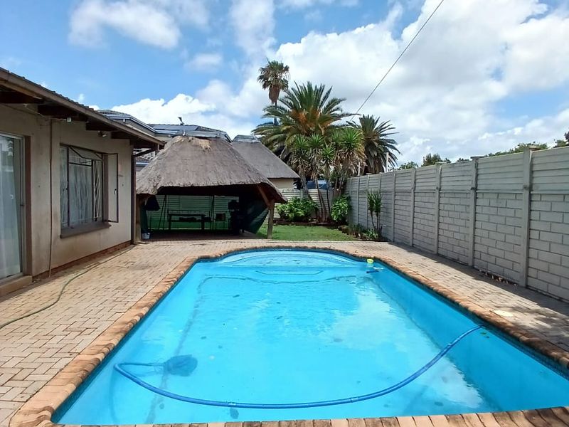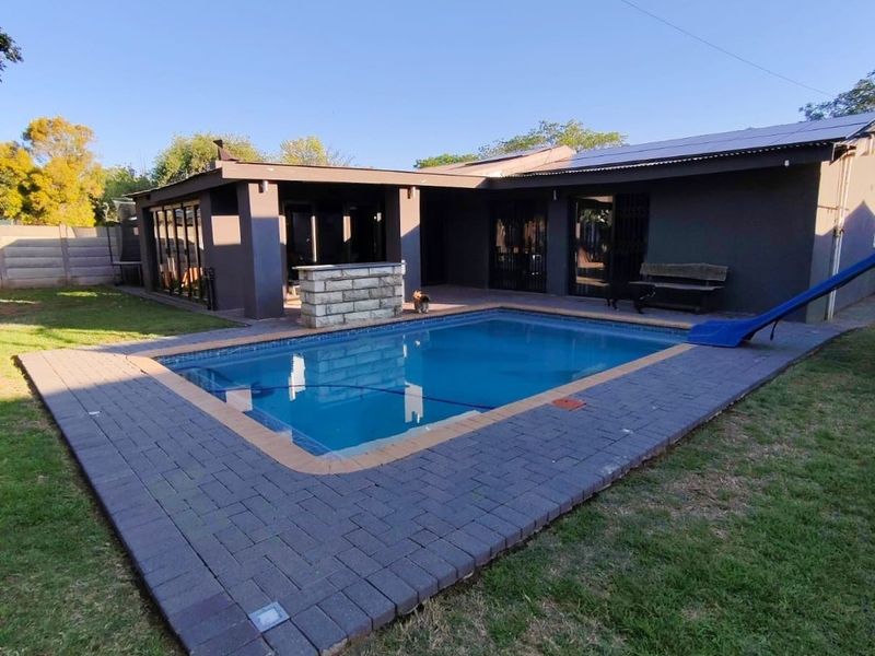 Perfect family entertainers' home in a peaceful suburb, with modern gas kitchen and flatlet. Braai entertainment area, heated pool, boma, jungle gym; three bedrooms, one bathroom, two covered parking.