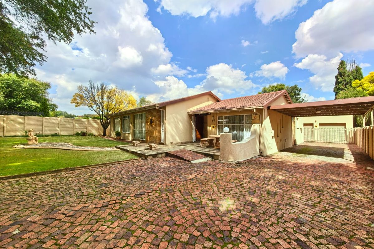 Double garages. Carports for 5 vehicles. Outside room with a toilet. Big yard with sprinkler system. The swimming pool needs a bit of TLC
