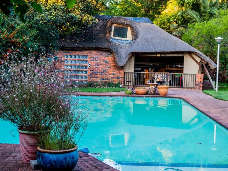 Entertainer's family retreat in a private suburban setting on a 1718 m² plot with pool and lapa for braais, large garden and indoor atrium. Four bedrooms, 2.5 bathrooms, double garage.