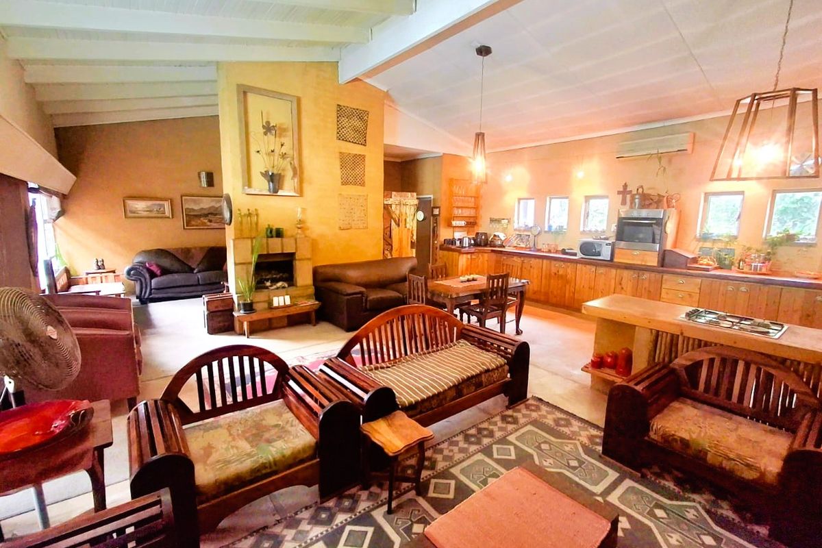 Covered patio with built-in braai, overlooking the lush garden — perfect for year-round entertaining