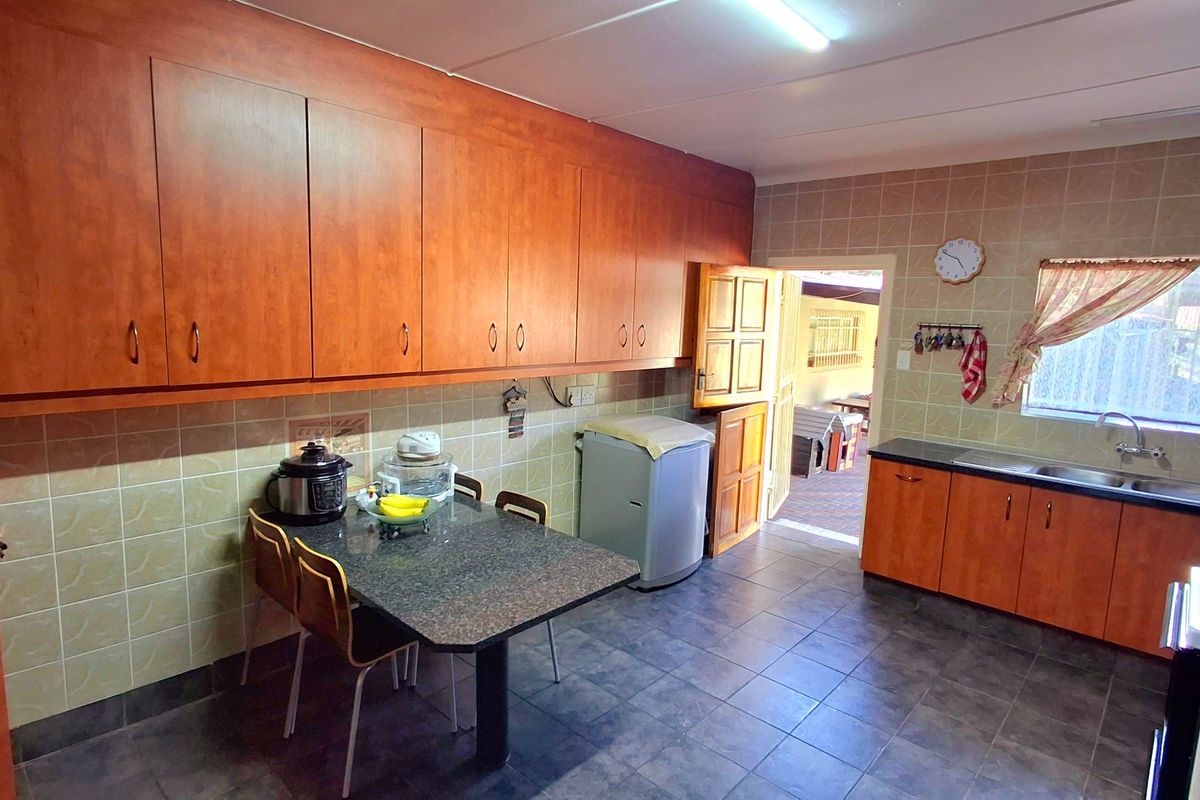 Relaxed family living in sought-after Sasolburg, steps from schools, shops and clinics, with a pool-centered entertainment area, well-kept wooden kitchen and four bedrooms.