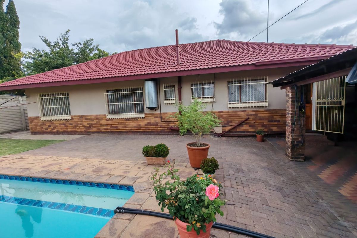 Effortless family living in prime Sasolburg, steps from shops and schools, with an entertainment area and built-in braai overlooking a heated pool and large garden; four bedrooms and tandem garage.