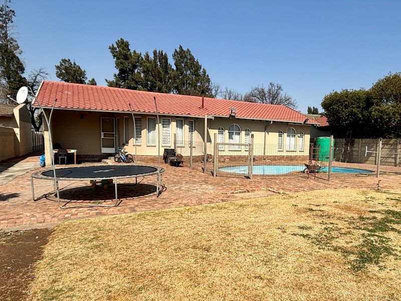 Entertainer’s oasis in Vaalpark with sparkling pool, entertainment area and borehole, plus study and seamless living — ideal for families: 4 beds, 3 baths, double garage, carport.