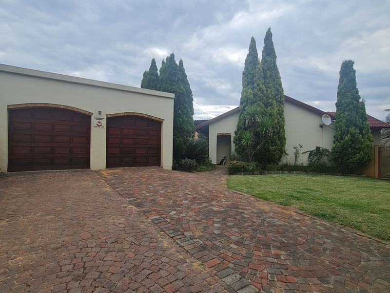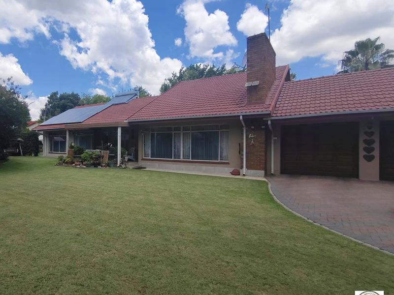 Entertainer's family retreat in Vaalpark with undercover patio flowing to pool and generous garden, plus 20-panel solar system; four bedrooms, two bathrooms and ample garage parking.