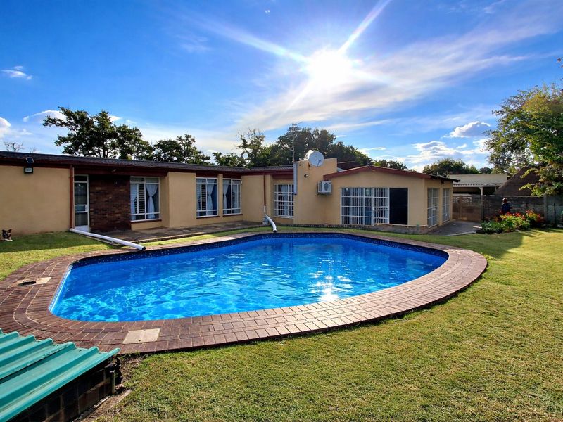 Entertainers' retreat on a 1308 m² plot in a friendly setting, with pool, lapa and braai, built-in bar and coal stove; 4 bedrooms, 2 bathrooms and double garage.