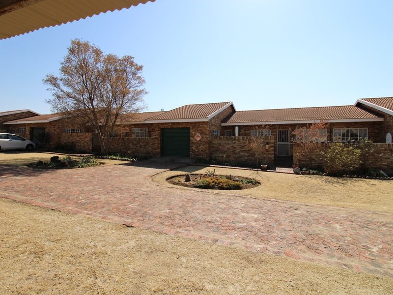 Family-focused entertaining and relaxed Vredefort living with expansive garden and enclosed lapa with built-in braai — borehole-fed, main bedroom en-suite; four bedrooms and multiple secure garages.