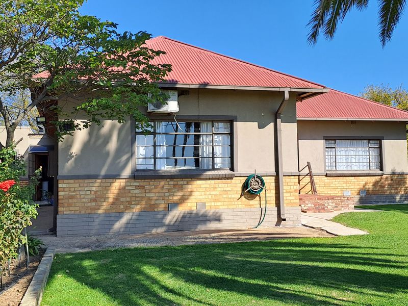 Peaceful, family-friendly home on a generous 1428 m² plot with expansive yard and large stoep for afternoon gatherings; three bedrooms, one bath, two garages and extra rooms.