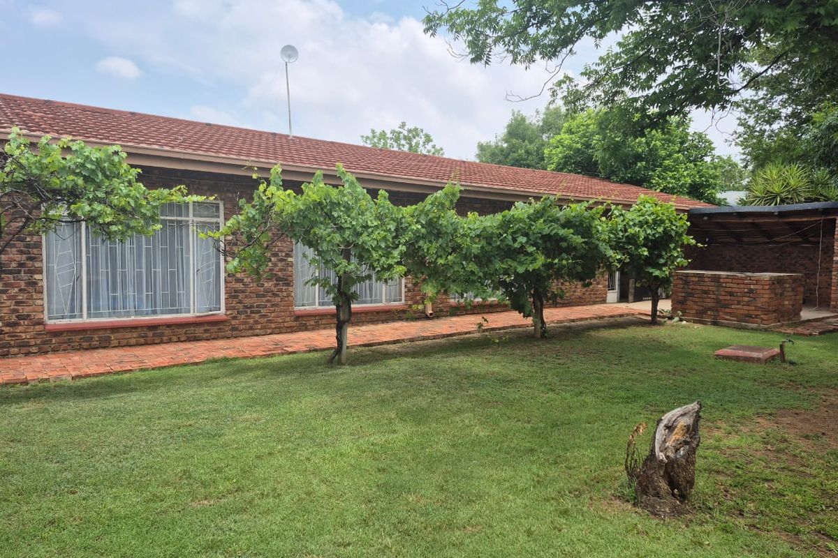 Family-focused entertaining and relaxed Vredefort living with expansive garden and enclosed lapa with built-in braai — borehole-fed, main bedroom en-suite; four bedrooms and multiple secure garages.