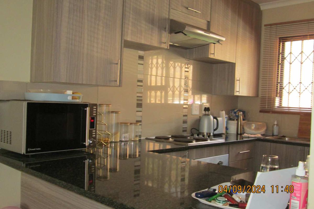 Step into a spacious open-plan living area that seamlessly connects to a modern kitchen, making it perfect for both entertaining and everyday family life. The kitchen boasts plenty of cupboard space and elegant granite countertops, ensuring a functional and stylish cooking experience. The home features three generously sized bedrooms, all equipped with built-in cupboards for ample storage. Enjoy the luxury of two bathrooms, including an en-suite in the master bedroom for your privacy and comfort. The entire home is fully tiled, providing a clean and contemporary feel throughout.