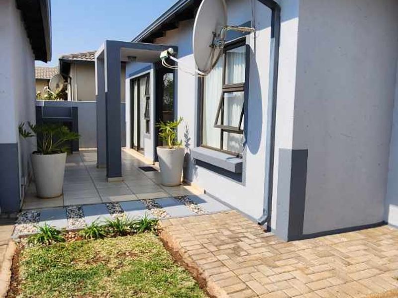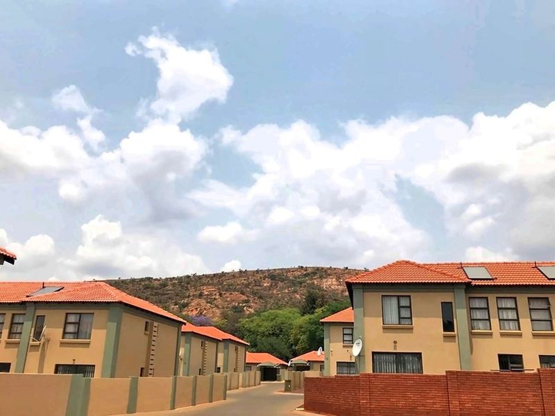 Easy family living near Wonderpark Mall and local amenities in a quiet complex — open-plan kitchen and lounge, backup solar with gas stove, three bedrooms, 2½ bathrooms, lockup garage.
