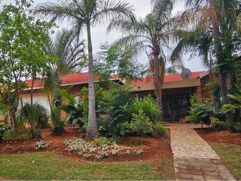 Relax in professionally designed gardens with lapa, built-in braai and large pool in Amandasig, Akasia — close to schools, shopping and highway; six bedrooms, five bathrooms.