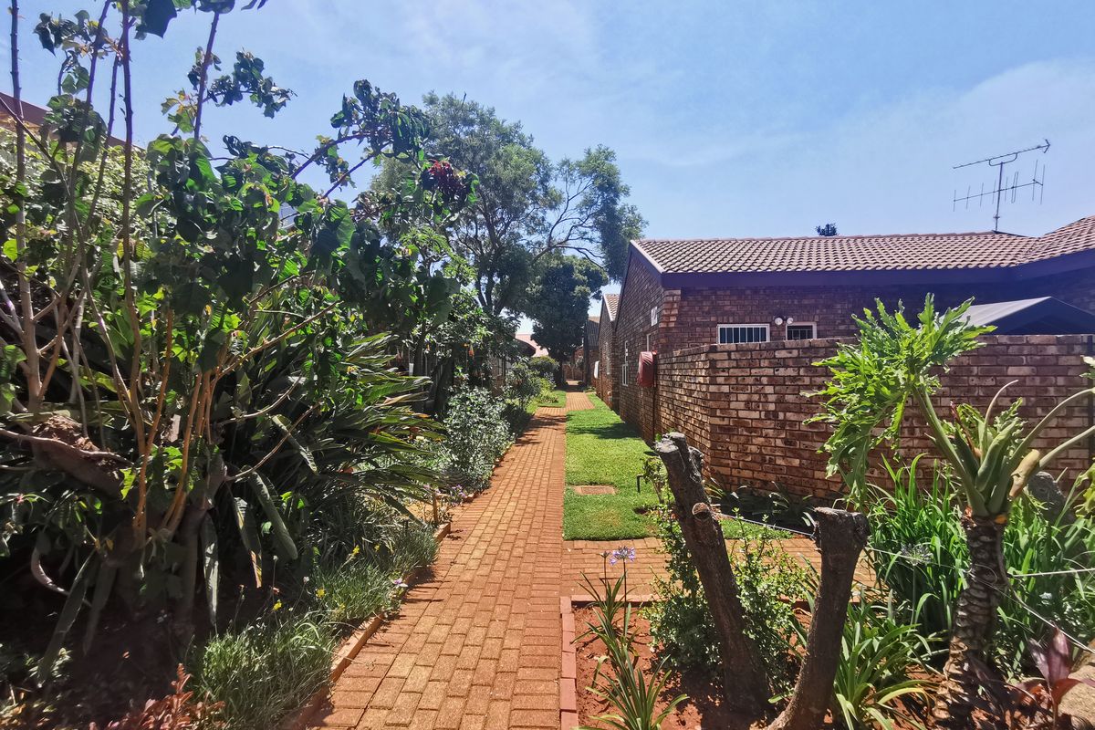 Relax in a secure gated retirement village north of Pretoria, enjoying social activities, well-kept gardens and an enclosed porch — turn-key 2-bed, 2-bath simplex with single garage.
