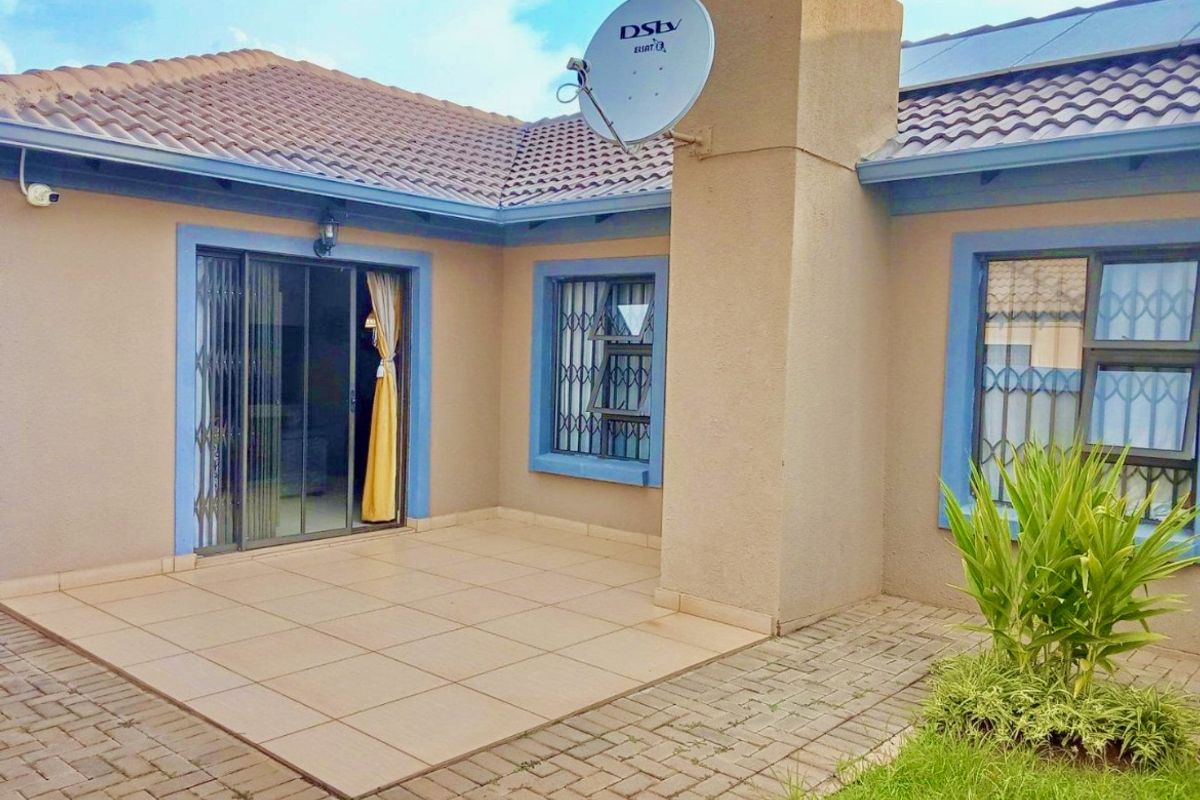 Entertain outdoors at the built-in braai in this neat, secure home in a peaceful neighborhood, featuring an open-plan kitchen, three bedrooms, two bathrooms and a double garage.