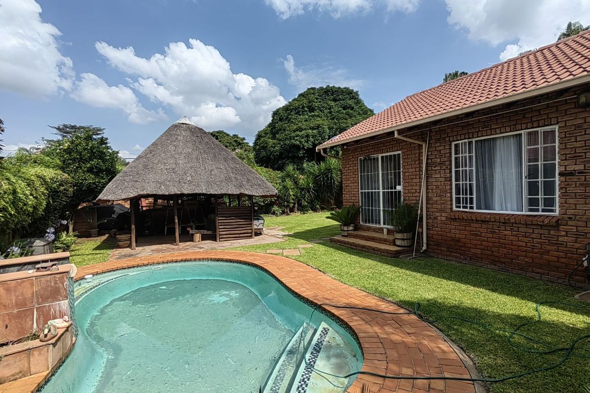 Family-focused entertainer in a peaceful garden setting, with seamless indoor–outdoor flow to an indoor braai, sparkling pool and lapa; includes four bedrooms, two bathrooms and a workshop garage.