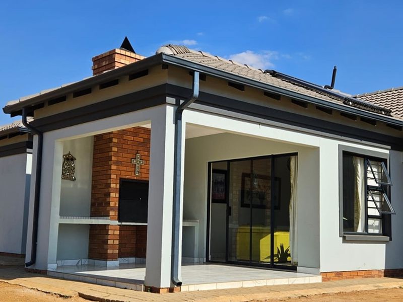 Effortless family living and weekend braais in Heatherview, Akasia — close to schools and shops. Covered patio with built-in braai, modern kitchen; three bedrooms, two bathrooms and double garage.