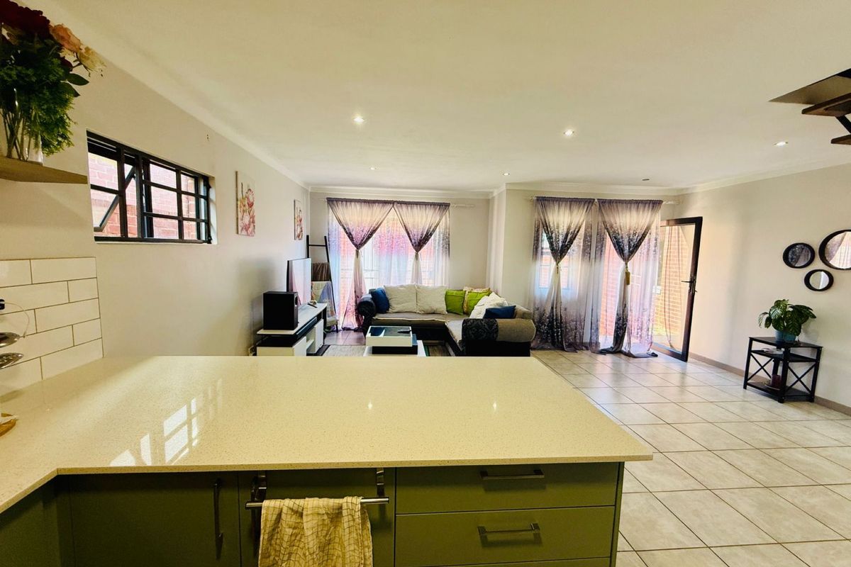 Family-focused living in sought-after Karenpark Estate, Akasia — bright open-plan interiors, modern kitchen and private garden with built-in braai. Three bedrooms, two baths, garage.