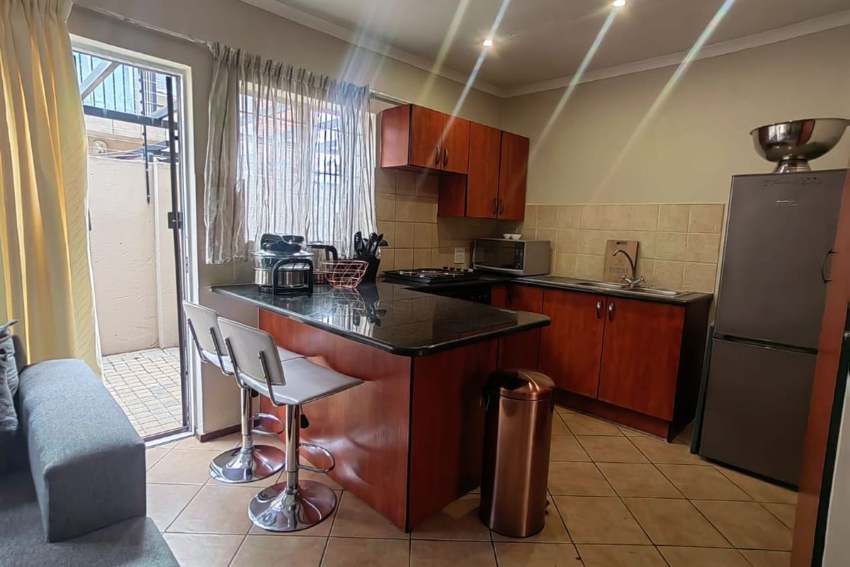 Central Pretoria North living with convenient amenities on your doorstep — open-plan kitchen, sunny braai patio and secure parking, ideal for young professionals or couples; 2 beds, 2 baths.