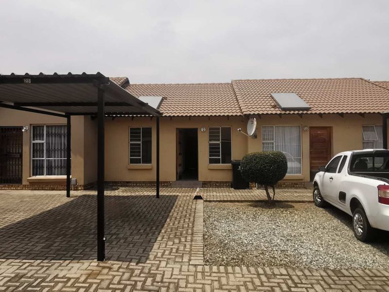 Secure, low-maintenance estate living with 24/7 guarded access and communal calm; open-plan lounge and kitchen, main en suite, prepaid electricity, three bedrooms, two baths, covered carport.