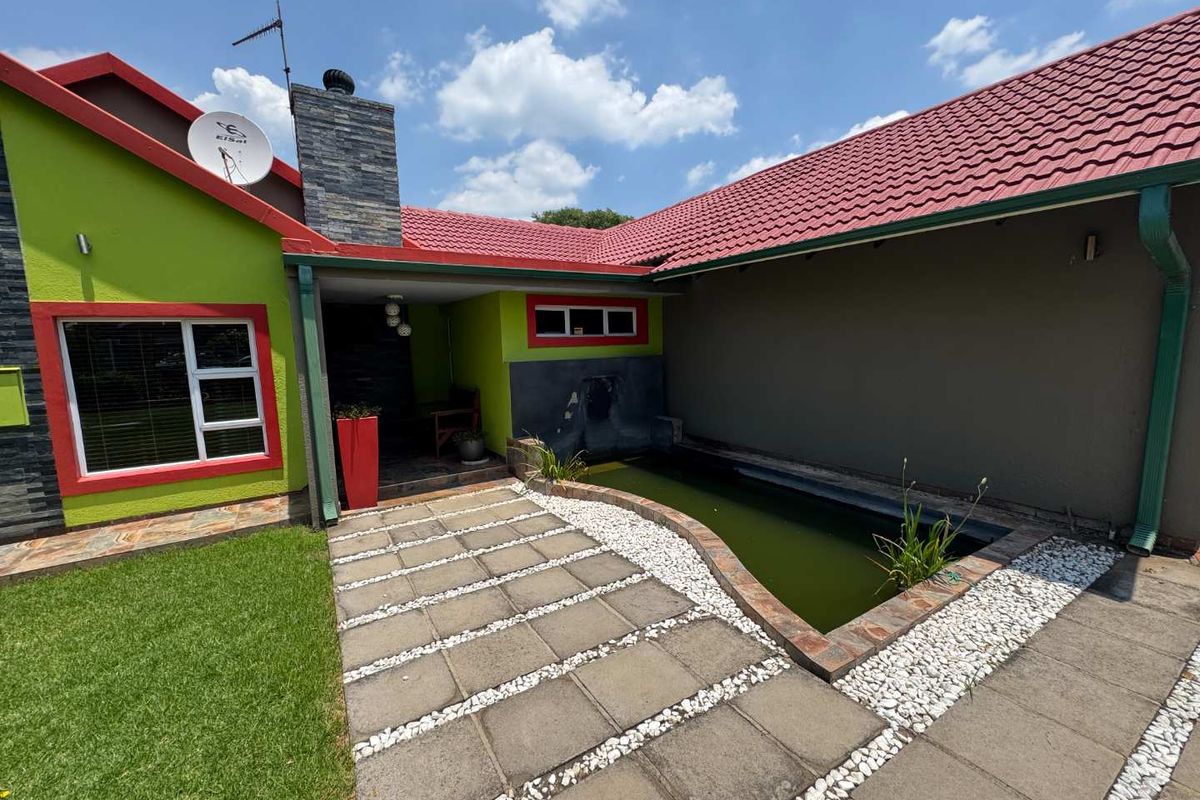 Perfect for family living and entertaining in a peaceful, leafy neighbourhood — indoor entertainment with built-in braai, splash pool and koi pond; 4 beds, 2 baths, double garage.