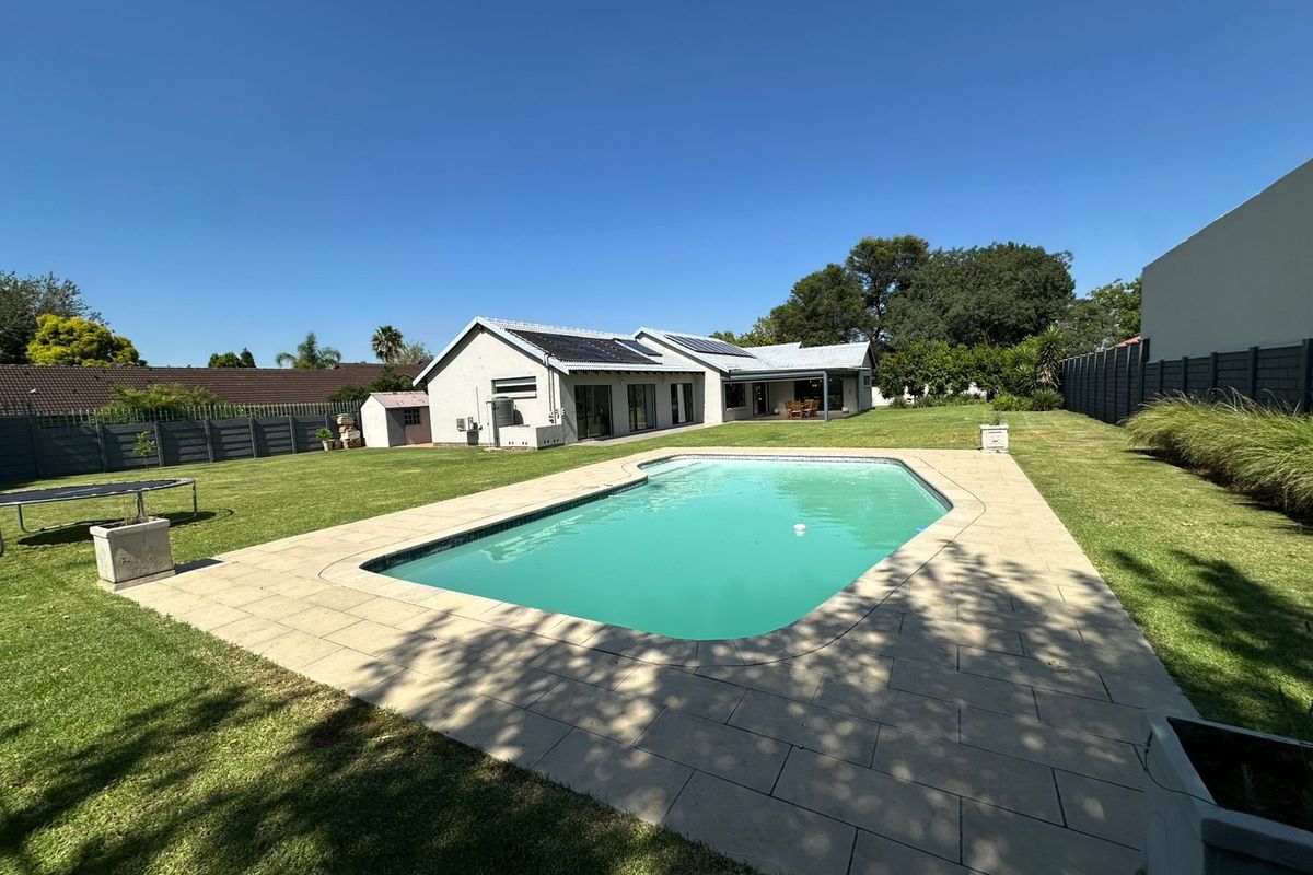 Additional features include a full solar power system, solar-heated pool, solar geyser, water backup system, advanced security, prepaid electricity, aluminium window frames, two storage sheds and a double automated garage with direct access.
