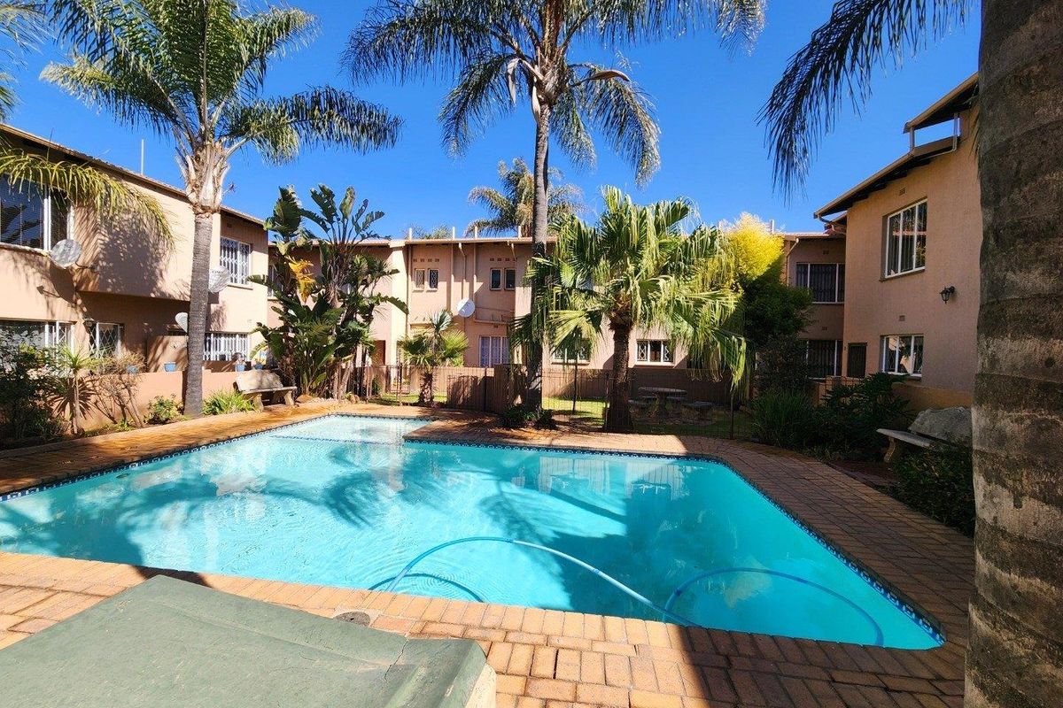 Effortless lock-up-and-go living in popular Verwoerdpark: upstairs townhouse with airy open-plan lounge, mica-countertop kitchen, private en-suite bath/shower, and secure access-controlled complex with single garage.