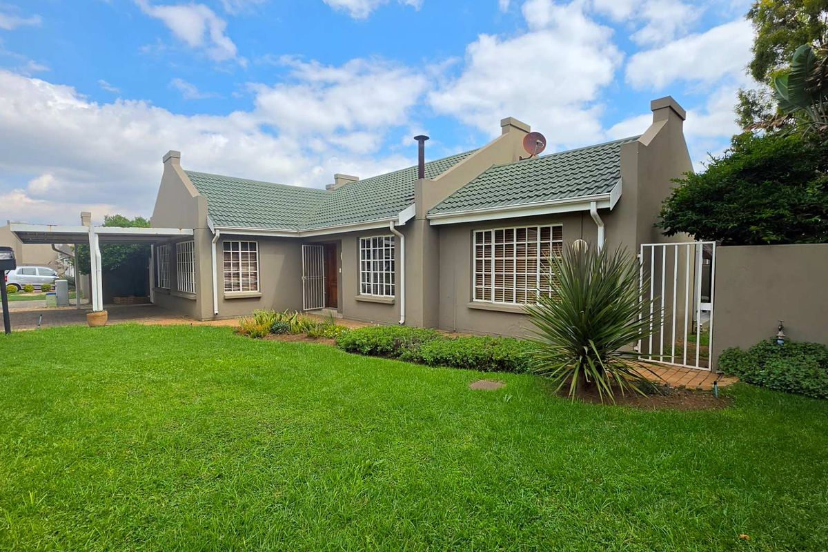Relaxed family living in Verwoerdpark, Alberton with secure, pet-friendly estate lifestyle and suburban convenience. Entertain effortlessly in a built-in bar and lapa; three beds, two baths, double carport.