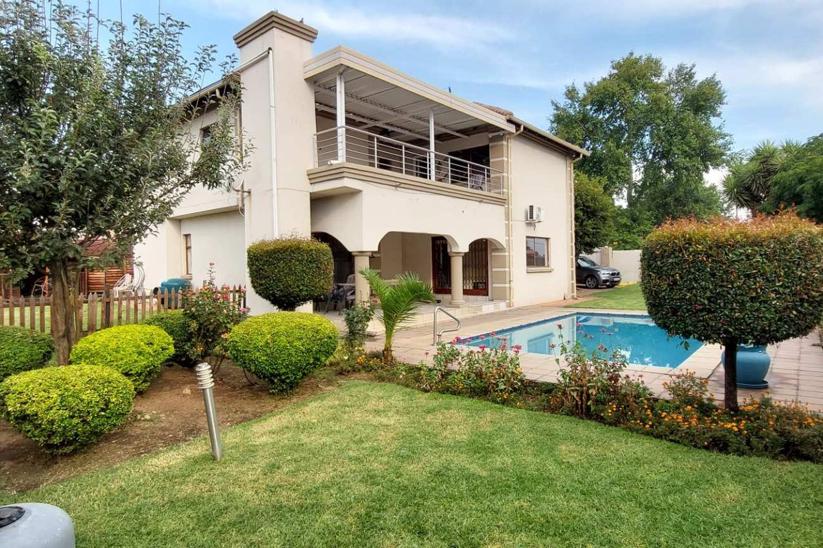 Entertainer's double-storey home for relaxed poolside living in a quiet, established suburb; expansive balcony with sunset pool views and built-in braai. Five bedrooms, three bathrooms, double garage.