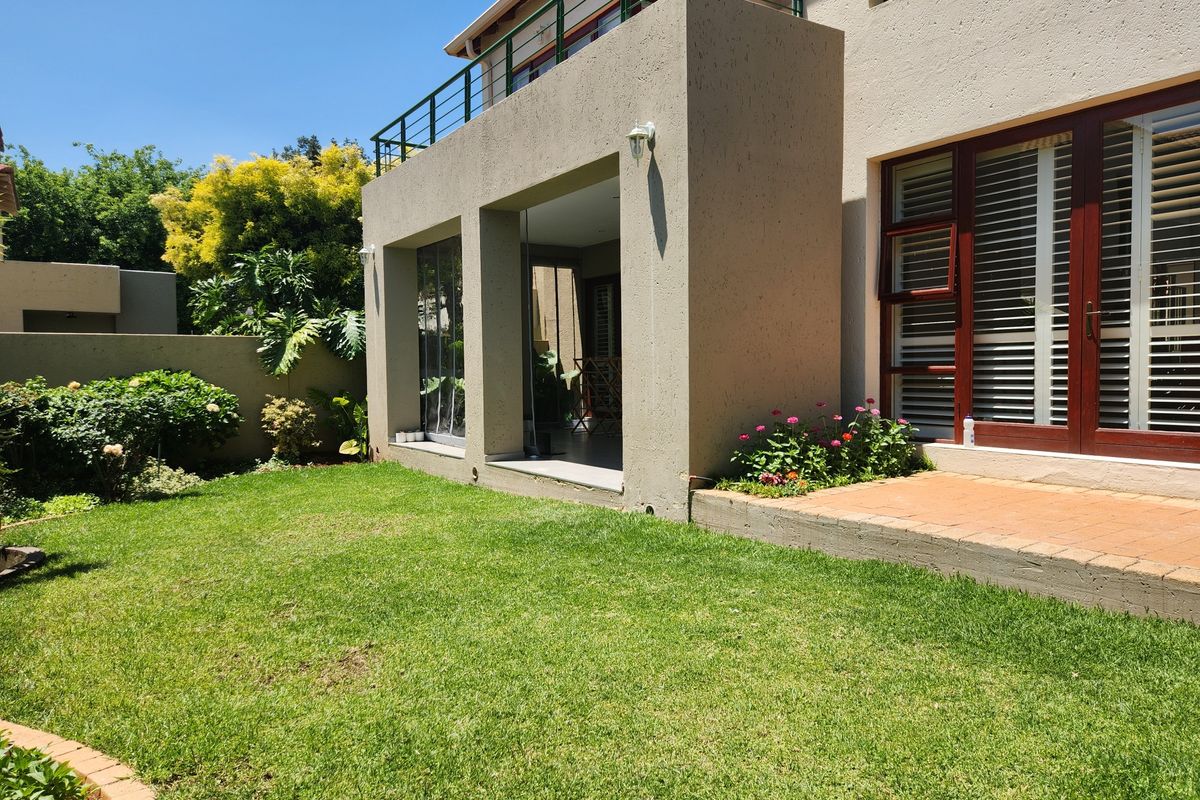 Secure estate living near Reddam House and Bedford Centre, perfect for families; covered patio with built-in braai overlooks a private garden. Four bedrooms, three bathrooms and single garage.