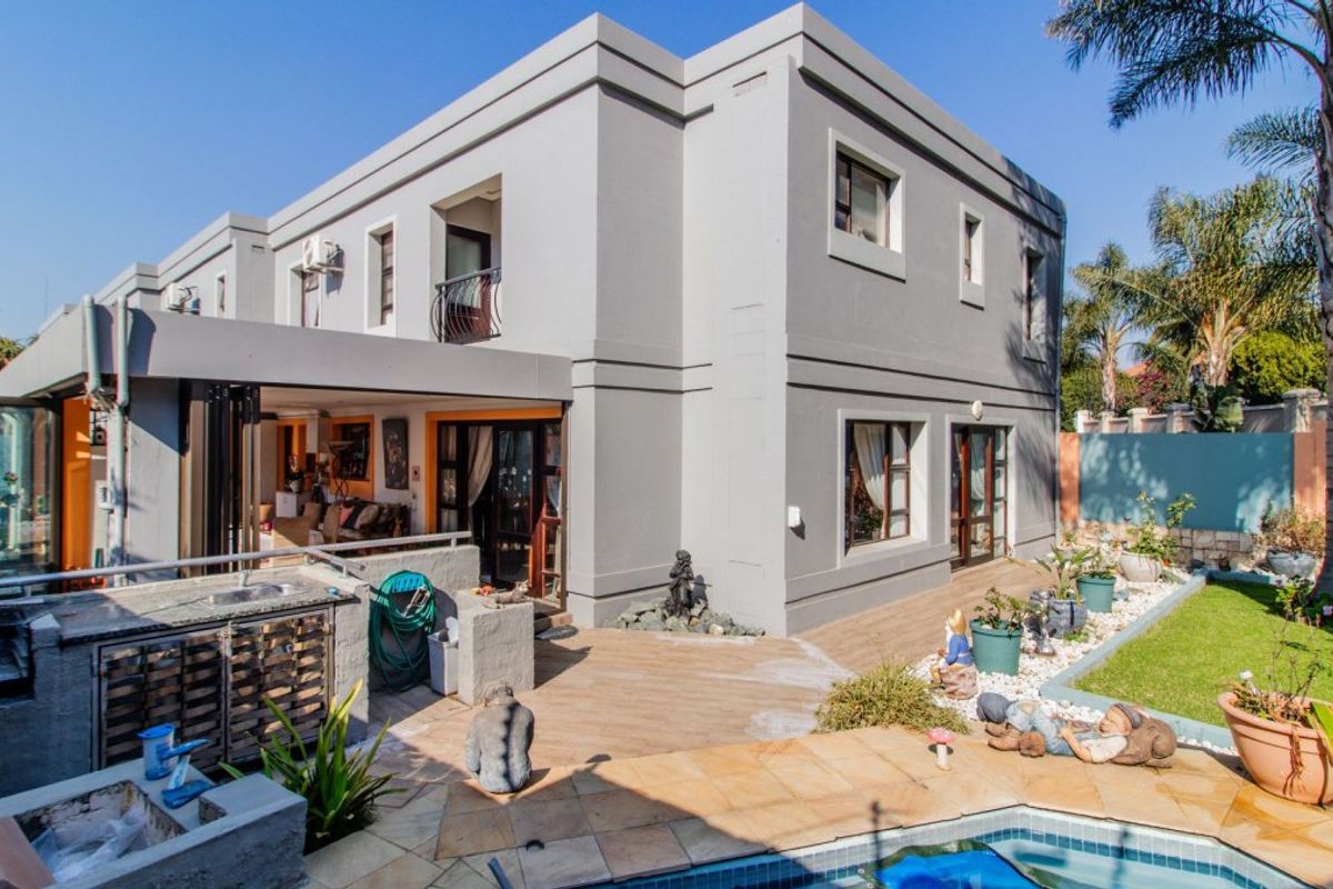 The outdoor area is designed for easy entertaining, featuring a sparkling pool and a built-in braai area—perfect for enjoying sunny South African days with family and friends.