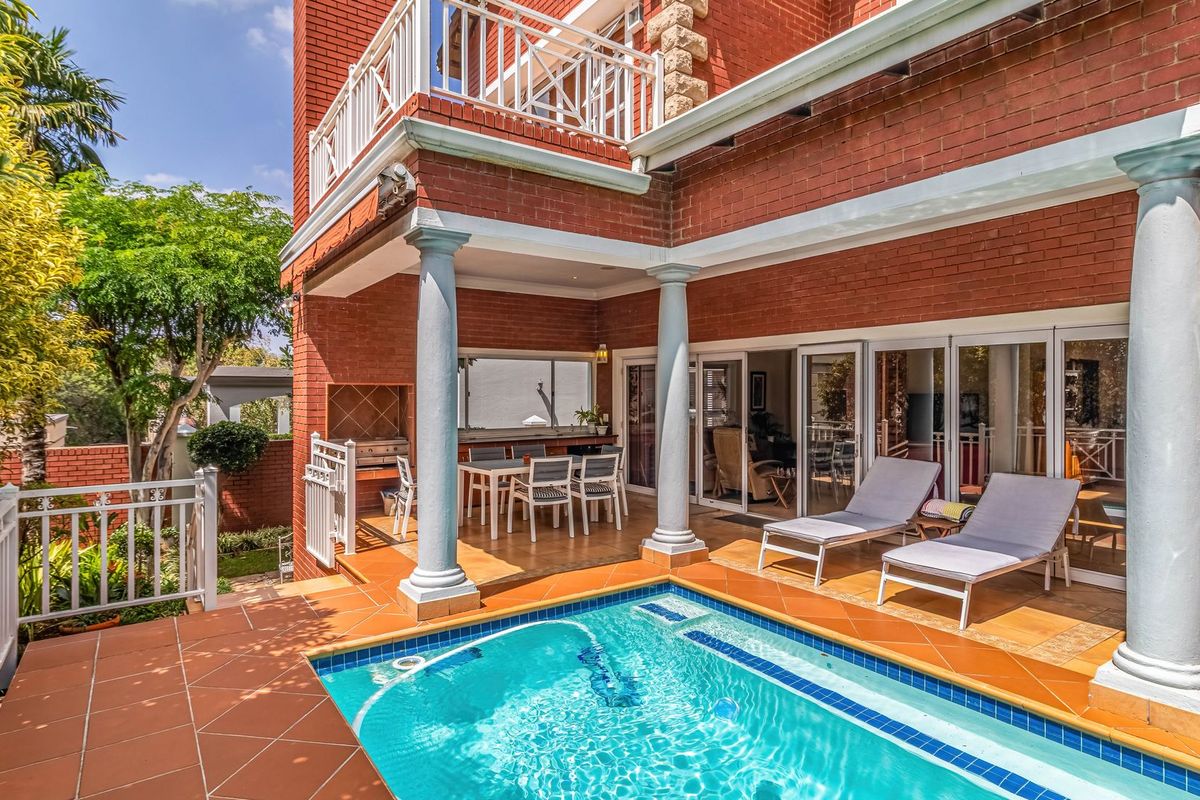Upscale estate living opposite Reddam House Bedfordview, steps from Bedford Centre — secure, tranquil gardens with a heated pool and solar backup. Three en-suite bedrooms and study.