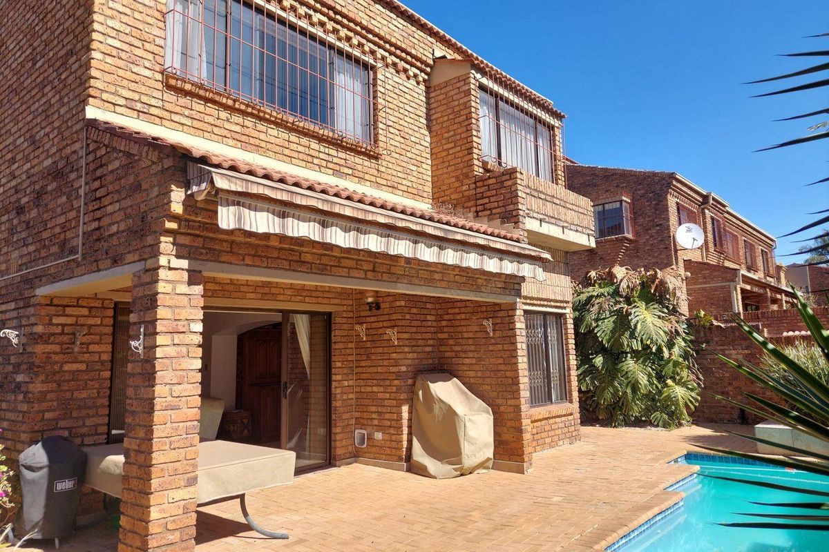 Set in sought after complex in Morning Hill, this delightful unit comes with so many extras. Entrance leads to sun drenched lounge, with sliding doors to patio and solarheated pool. Sunny dining room to open plan kitchen, gas hob, kwik geyser for kitchen sink and space for appliances - there's a door to small courtyard, A generous study (could be family room) and guest loo. Upstairs you have three good sized north facing bedrooms, with built in cupboards. 2 bathrooms, main en-suite. The master bedroom has dressing area with loads of cupboards as well as a loft storage with pull down ladder.
