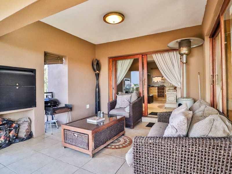 Resort-style family living in a prestigious boomed enclave surrounded by natural vistas, with landscaped grounds, thatch lapa and pool — four bedrooms, double garage.