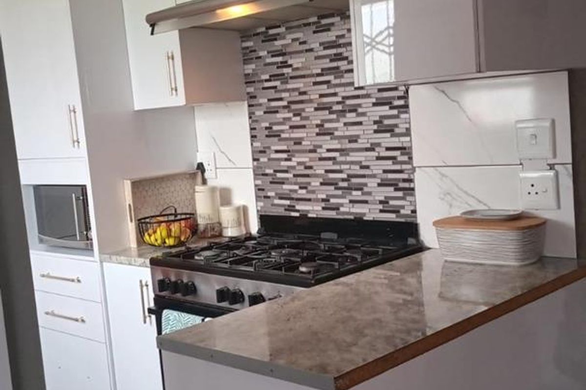 Step inside to be welcomed by a modern fitted kitchen complete with sleek units and a four-plate gas stove, ensuring uninterrupted cooking convenience during load shedding.