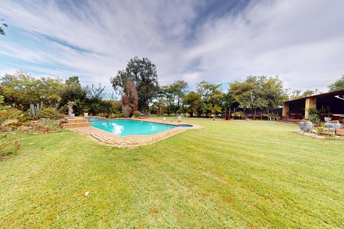 The property is further enhanced by staff quarters, a large storage facility or workshop space, and covered carport parking. A borehole supplies water to the entire property, complemented by an additional water well, ensuring reliable water access. The outdoor space is completed by a large swimming pool and a beautifully landscaped garden.