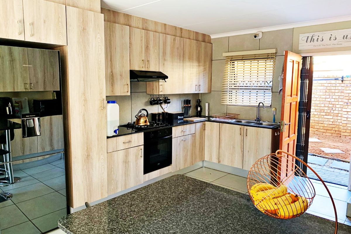 Secure, lock-up-and-go family living in quiet Benoni estate with easy R21/N12 access and nearby shops; light-filled open-plan living and a modern granite kitchen with breakfast nook.