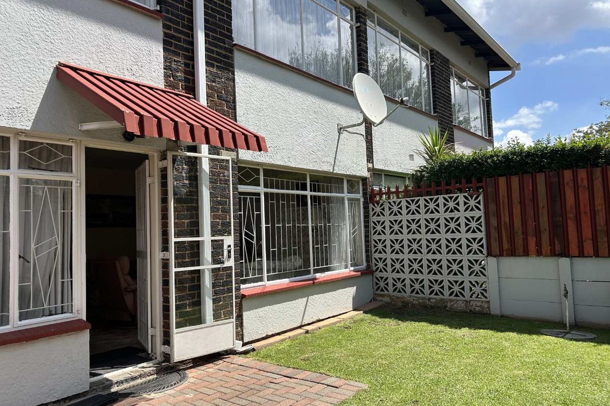 The ground floor features a neat melamine kitchen equipped with a four-plate stove and space for a single-door fridge. From the kitchen, move seamlessly into the carpeted lounge and dining area, which opens through elegant French doors onto a beautifully maintained private garden. This outdoor space is perfect for relaxing or entertaining and is pet-friendly, allowing for two small pets, either cats or dogs.