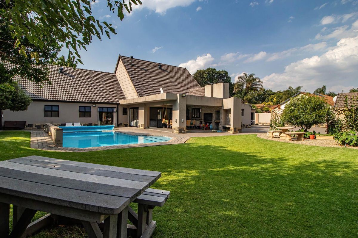 Effortless entertaining and family living on generous 2274 m² in a peaceful, leafy neighbourhood — heated pool and covered braai patio, five bedrooms, 3.5 baths, four-car garage.