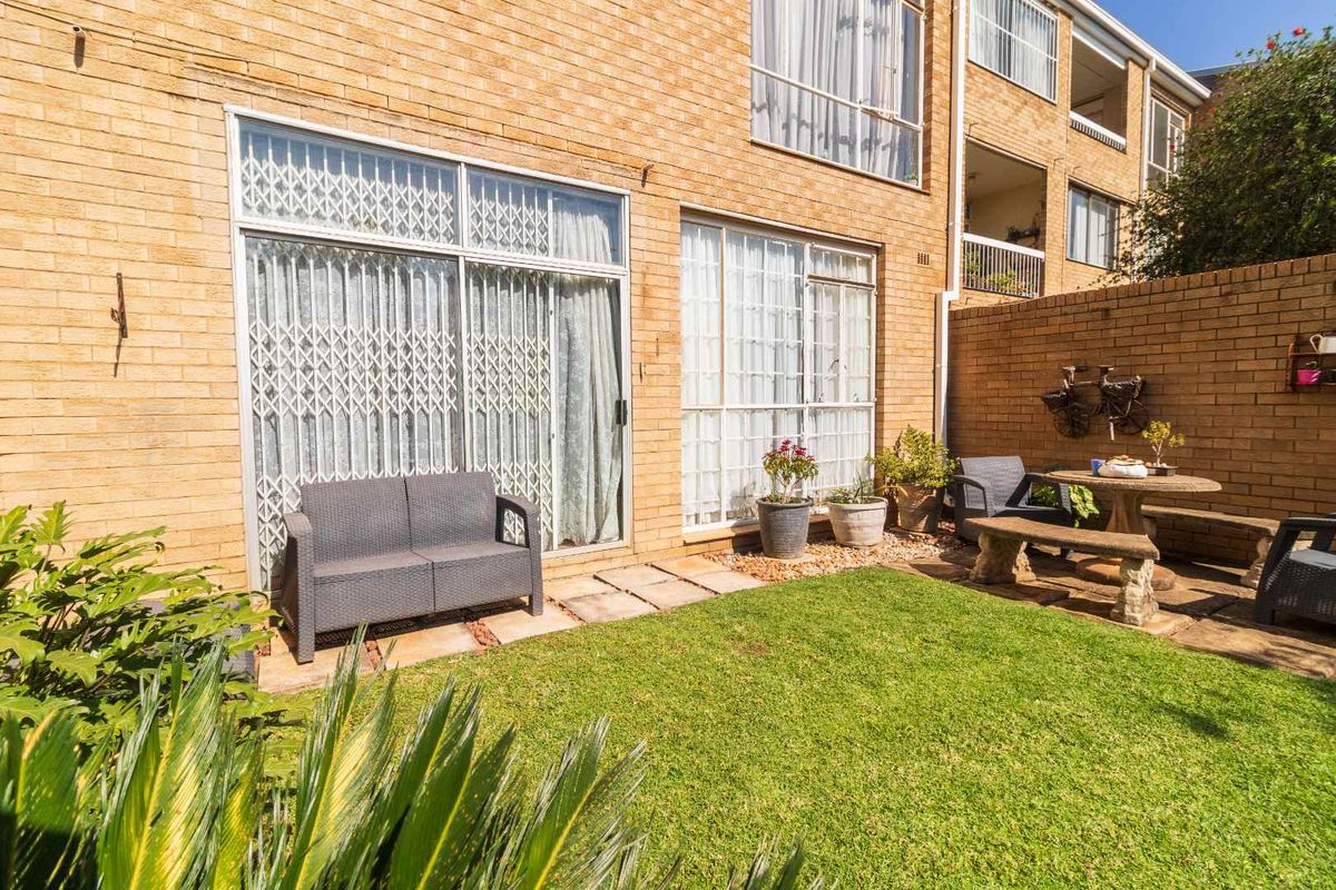 A warm, solid wood kitchen boasting ample storage and counter space sets the tone for this lovely flat. The spacious open-plan living and dining areas face the manicured garden - making it the perfect place to entertain friends and family. The main master bedroom is generous in size and features a walk in-cupboard. Two generous sized bedrooms boast built in cupboards with loads of storage space. The elegant bathroom features a walk-in shower, basin and toilet. Separate guest loo. A light and breezy patio area can also be used as a study or office.